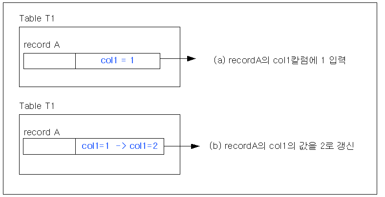 삽입 연산에 의해 생성된 언두 로그 레코드들은 갱신 및 삭제 연산에 의해 생성된 로그 레코드들과 따로 관리된다. 이는 삽입 연산에 의해 생성된 언두 로그 레코드들이 트랜잭션 커밋 시점에 바로 해제될 수 있게 하기 위해서이다.