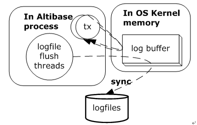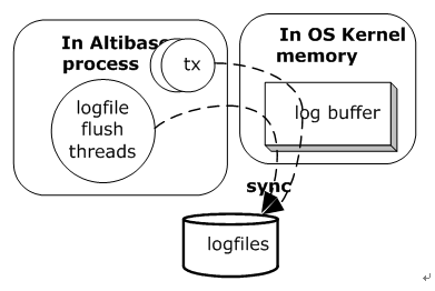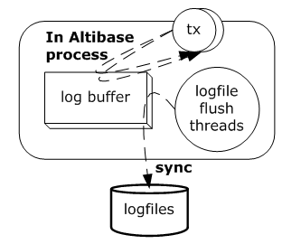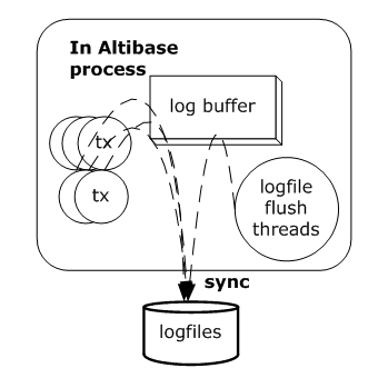 Altibase는 트랜잭션의 영속성(durability)을 altibase.properties 파일의 COMMIT_WRITE_WAIT_MODE 프로퍼티와 LOG_BUFFER_TYPE 프로퍼티로 관리한다. COMMIT_WRITE_WAIT_MODE는 변경 로그가 디스크 로그 파일에 반영이 완료될 때까지 트랜잭션이 대기할 것인지 여부를 설정한다. 이 프로퍼티는 전체 시스템 또는 각 세션별로 설정될 수 있다.