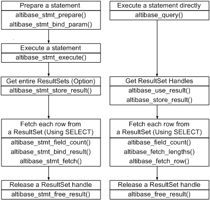 Prepare-Execution 방식으로 SQL문을 수행하려면 ALTIBASE_STMT핸들을 사용해야 한다. 하나의 연결 핸들에 대해 최대 1024개의 ALTIBASE_STMT핸들이 할당될 수 있다.
