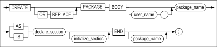 패키지 바디의 초기화 부분은 선택적인 기능으로써, 세션 별로 최초 패키지 실행 시 한 번만 실행된다. 초기화 부분은 패키지 내에서 선언되거나 참조되는 변수들의 값을 셋팅하기 위해 주로 사용된다. 또한, 패키지 바디에는 예외 처리 부분도 기술될 수 있다.
