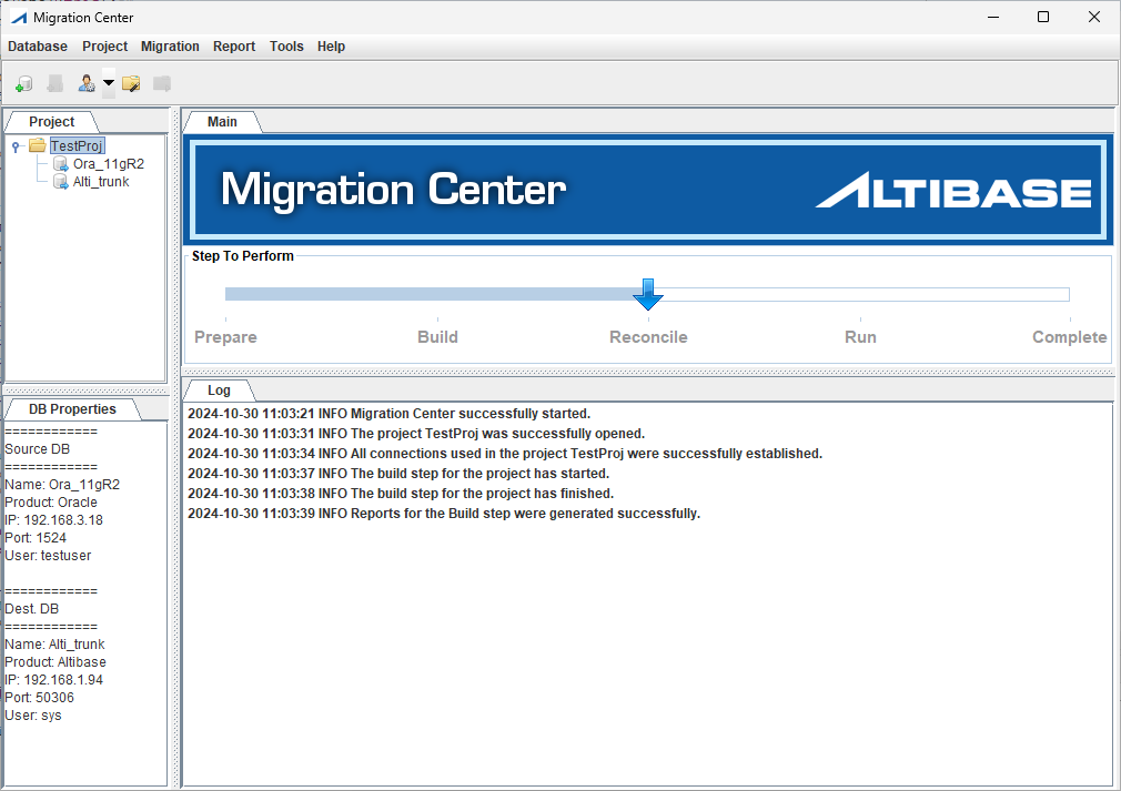 "준비" 단계는 실제 마이그레이션 프로젝트에 대한 암묵적인 단계이다. "준비" 단계의 최종 상태는 모든 데이터베이스 연결이 설정된 프로젝트가 열려 있는 것이다. 최종 "준비" 단계 상태로 가려면, 사용자는 운영중인 데이터베이스 연결 정보를 추가하거나, 기존의 마이그레이션 프로젝트를 열거나, 사전에 구성된 데이터베이스 연결을 사용해서 새로운 마이그레이션 프로젝트를 생성하거나, 또는 데이터베이스와의 연결을 설정해야 한다.