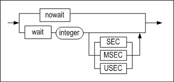 레코드를 삽입할 테이블에 동일한 키 값으로 아직 커밋되지 않은 레코드가 존재하는 경우 대기해야 하는데, WAIT 옵션을 이용하면 얼마나 대기할지 설정할 수 있다. 설정할 수 있는 시간 단위는 second(초), millisecond(msec, 1/1000초), microsecond(usec, 1/1000000초)이며 표기하지 않으면 초 단위가 적용된다.