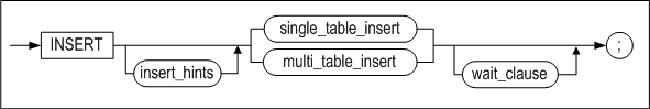 SYS 사용자, 테이블 소유자, INSERT ANY TABLE 시스템 권한을 가진 사용자 및 테이블에 대한 INSERT 객체 권한을 가진 사용자만이 이 구문으로 해당 테이블에 레코드를 삽입할 수 있다.
