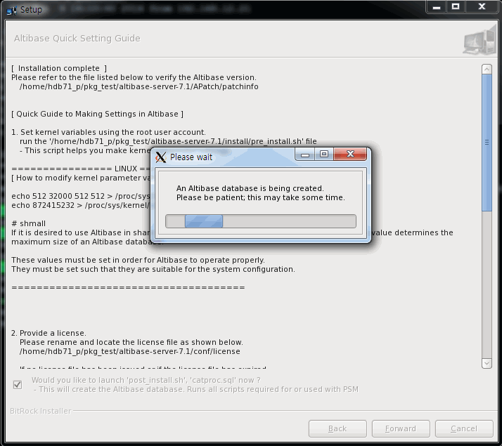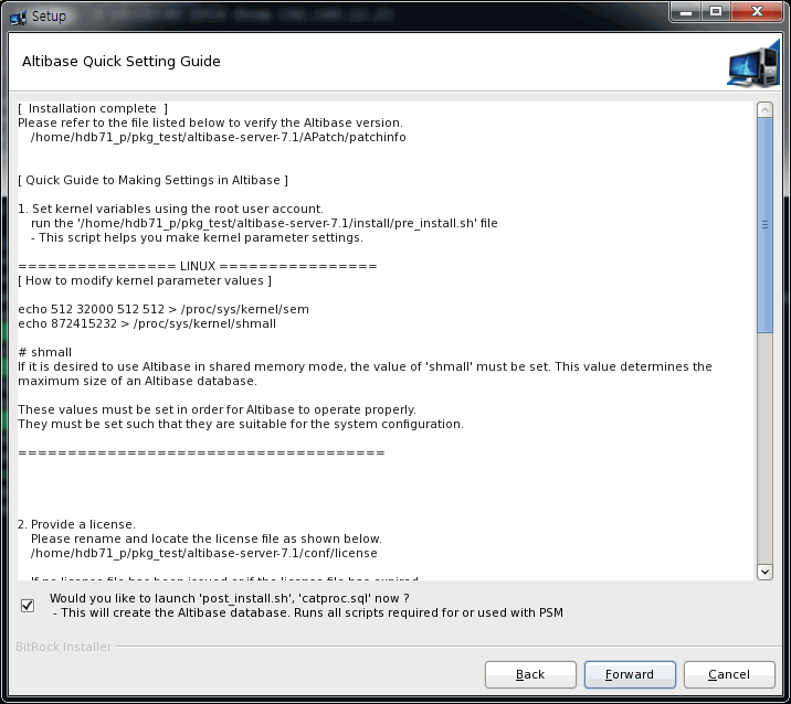 Run the '/home/hdb71_p/pkg_test/altibase-server-7../post_install.sh' file