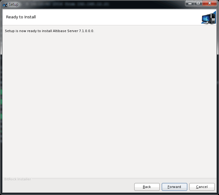 이 값들을 확인 후에, "Forward" 를 클릭하면 "Ready to Install" 패널이 아래처럼 보여질 것이다.