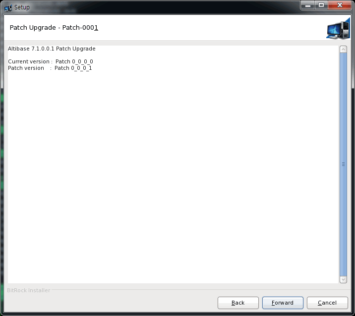 이 패널은 선택한 디렉터리에 현재 설치된 Altibase 제품의 패치 버전과 적용할 패치의 버전을 보여준다.