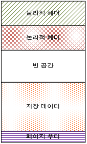 페이지의 논리적 헤더는 페이지 아래 방향으로 확장되어 저장된다. 그 크기는 가변적이다.