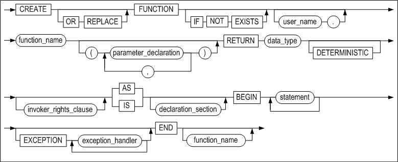 | CREATE [OR REPLACE] FUNCTION 문 | 새로운 저장 함수를 생성하거나 이미 생성된 저장 함수의 정의를 변경하는 문장이다. | |