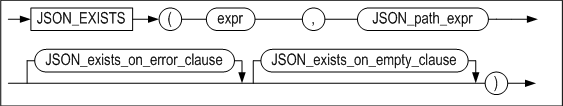 JSON 데이터에서 JSON 경로 표현식에 해당하는 값이 존재하는 여부를 반환한다. JSON_EXISTS_on_error_clause와 JSON_exists_on_empty_clause 를 지정할 수 있다.