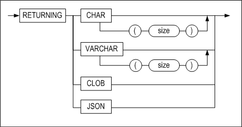 JSON_returning_clause 를 명시하지 않으면, 반환값의 데이터타입은 VARCHAR로 설정되며, precision은 입력된 데이터의 크기에 따라 자동으로 계산된다.