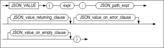 JSON 문서에서 JSON 경로 표현식에 해당하는 값을 찾아 스칼라 값으로 반환한다. JSON_VALUE_returning_clause,JSON_VALUE_on_error_clause, JSON_VALUE_on_empty_clause 를 지정할 수 있다.