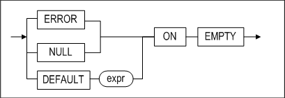 JSON_VALUE 함수 실행 중 반환된 결과가 없는 경우의 동작을 지정할 수 있다. 이 절을 명시하지 않으면, NULL ON EMPTY 로 동작한다.