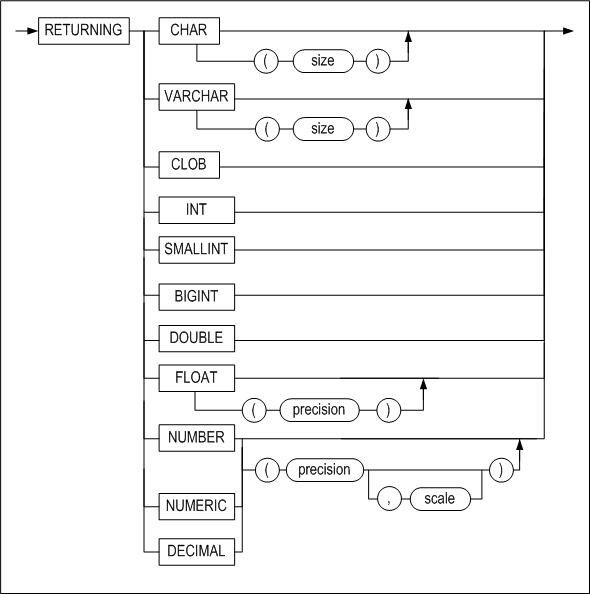 이 절을 명시하지 않으면 반환값의 데이터타입은 VARCHAR로 설정되며, precision은 입력된 데이터의 크기에 따라 자동으로 계산된다.