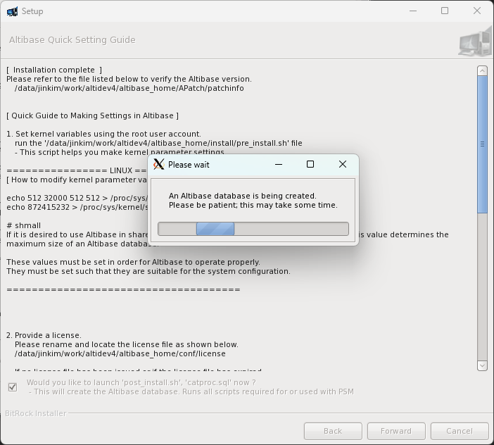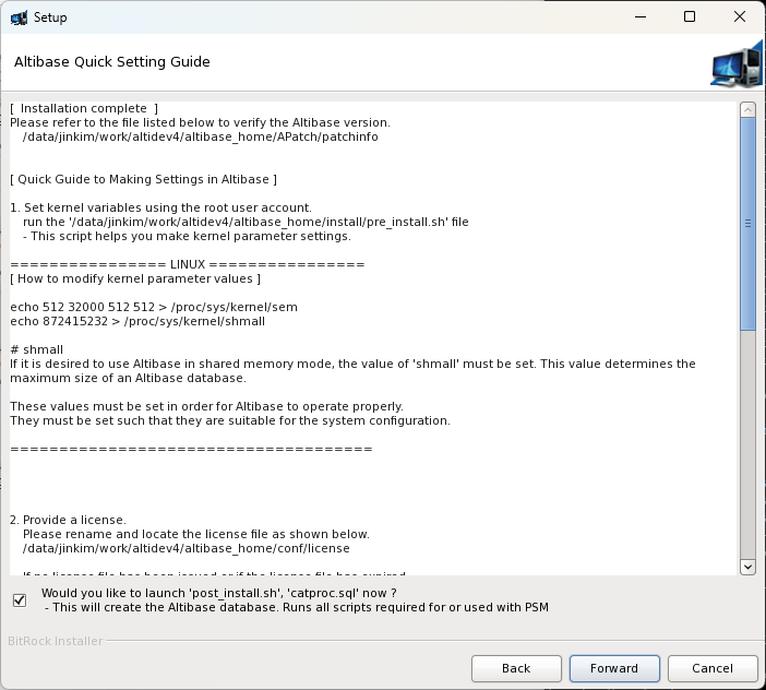 Run the '/home/work/pkg_test/altibase-server-7../post_install.sh' file