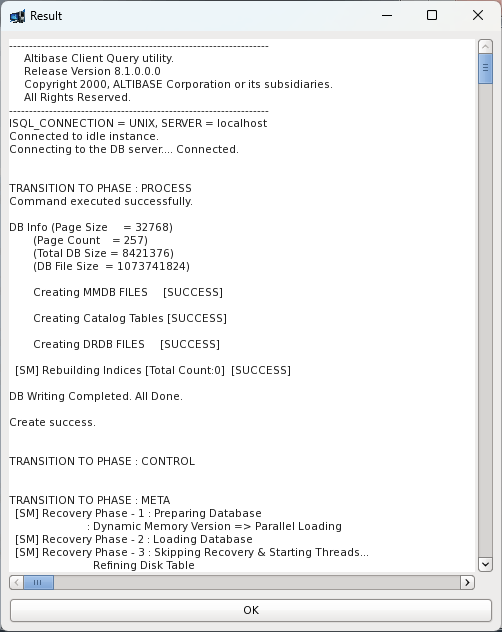 이 스크립트는 Altibase 프로퍼티 설정 과정에서 단계2를 수행했다면 새로운 데이터베이스를 생성하기 위한 SQL 스크립트를 포함한다.
