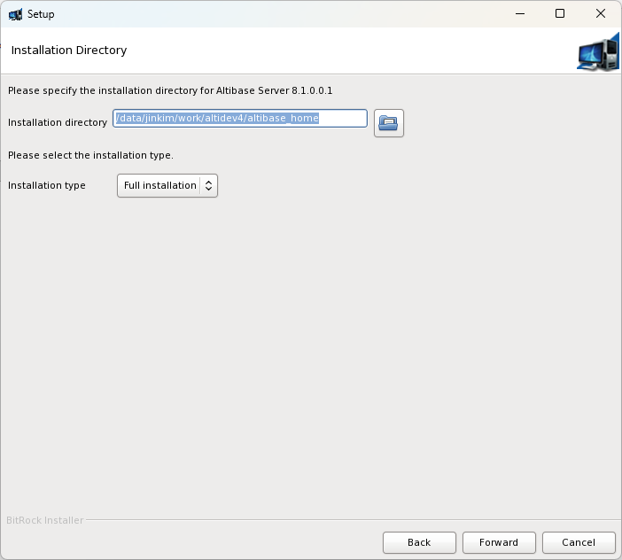 $ chmod +x altibase-server-8.1.0.0.1-LINUX-X86-64bit-release.run