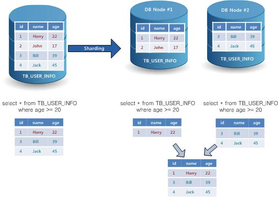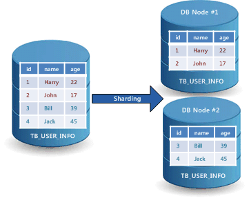 샤딩(Sharding)은 한 대의 데이터베이스에 저장했던 데이터를 여러 대의 데이터베이스에 분산하여 저장 및 처리하는 스케일 아웃 기술이다.