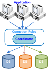 이 구조는 코디네이터의 도움으로 기존 응용프로그램 변경을 최소화할 수 있는 장점이 있다. 반면 코디네이터 처리 용량을 넘어서면 병목현상(bottle-neck)이 발생하여 샤딩 시스템을 확장하기 어려운 단점이 있다.