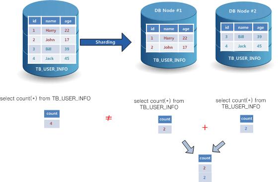 샤드 쿼리는 분산된 테이블의 레코드를 쿼리 수행하여도 결과가 논리적으로 동일한 테이블의 레코드를 처리한 것과 동일하다. 논샤드 쿼리는 샤드 쿼리가 아닌 모든 쿼리를 지칭한다.