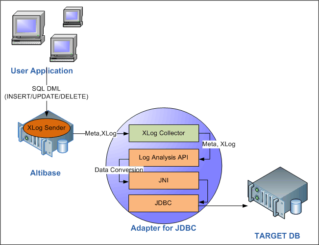 Altibase Adapter for JDBC(이하 'jdbcAdapter'라 칭한다)는 Altibase에서 변경된 데이터를 JDBC를 지원하는 다른 데이터베이스에 적용하는 유틸리티이다. 이는 Altibase 에서 제공하는 Altibase Log Analysis API를 이용하여 구현되었다.