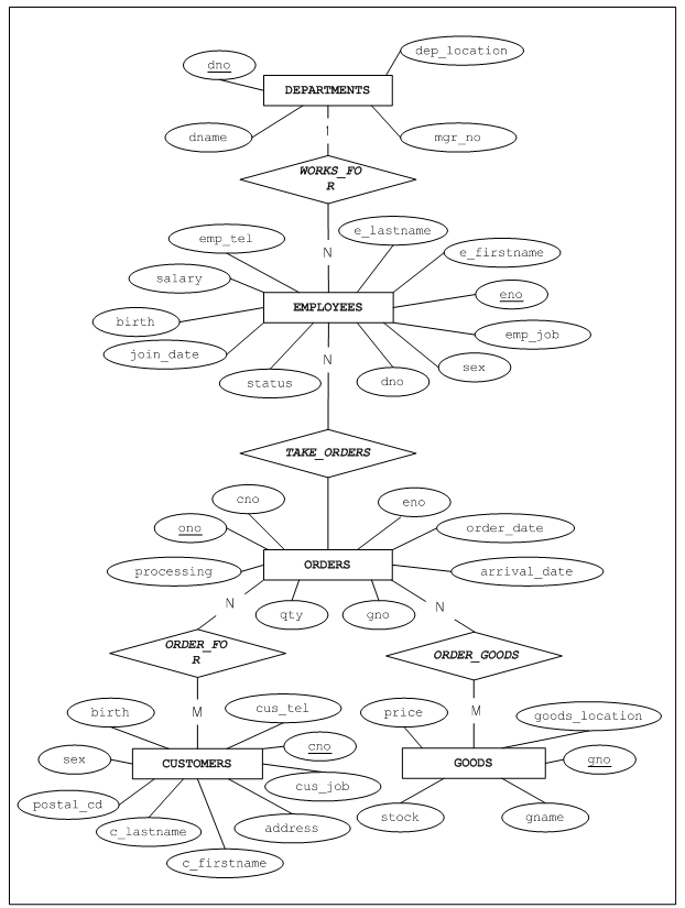 ONO ORDER_DATE ENO CNO GNO QTY ARRIVAL_DATE PROCESSING