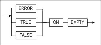 JSON_EXISTS 함수의 실행 중 결과가 없을 때의 동작을 지정할 수 있다. 이 절을 명시하지 않으면, 기본 동작은 FALSE ON EMPTY이다.